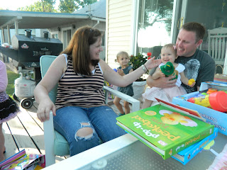 This past weekend, our precious little miracle turned 1! Can you believe it?! Wow, the past year has flown by, but we have loved every second of it...the sleepless nights of a newborn, the teething, the playing, the growing, and all of the changes. It's been so amazing to watch Korie grown up before our eyes. She is such a beautiful, smart, funny, healthy little girl, and I am so grateful for her! We had Korie's birthday party at the lake, and she was surrounded by all her family, who love her as much as we do. She had a great time, and really dug into her cake. It was a wonderful day, and the party was a success! Earlier this week, Korie had her 1 year check up with Dr. Loucks, and she once again was deemed perfect and healthy. She weights 22 lbs 6 oz (72nd percentile) and is 31.5 inches long (98th percentile). She had blood drawn and had 3 shots, which caused some tears, but she was just fine after a little cuddling with Mommy. We are so blessed to have this wonderful little creature in our lives! Enjoy some pictures below from her birthday party.
